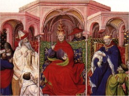 Quelques temps plus tard, Benoît XI, son successeur, a succombé après avoir mangé des figues qu’on venait de lui offrir... sans doute empoisonnées ! Tous les cardinaux vivent dans la terreur et se sentent menacés par leurs collègues. On ne parvient à se mettre d’accord sur aucun nom. Par dérision, quelqu’un suggère que l’on élise son cuisinier ! Il est clair qu’on ne pourra choisir le pape parmi les membres du conclave. Justement parce qu’il n’est pas cardinal, l’heure de Bertrand de Got, archevêque de Bordeaux, a peut-être sonné. Si seulement il parvient à s’entendre avec le terrible Philippe le Bel... "Je peux faire de vous le prochain pape" Selon un chroniqueur du temps, l’ambitieux prélat et le tout-puissant roi de France se rencontrèrent dans le plus grand secret, en forêt de Saint-Jean-d’Angely, en Saintonge. « Sire Archevêque, je peux faire de vous le prochain pape, commença le roi Philippe, fixant le prélat de son regard glacé. « Mais, en échange de mon soutien, vous devez m’accorder plusieurs grâces : « Je veux d’abord être pardonné et réconcilié avec la Sainte Église pour avoir fait capturer Boniface. « Je veux... continua l’inquiétant monarque, énonçant une à une ses exigences, demandant de l’argent, des honneurs pour ses amis, le pardon pour son homme de main, le sinistre Nogaret, etc. "Vous saurez plus tard ma dernière condition" « Quant à ma dernière condition, je ne puis vous la dire pour l’instant : vous la saurez le moment venu. « Acceptez-vous de m’accorder ces grâces, Sire Archevêque ? » Et le prélat, comprenant bien que son élection exigeait une telle soumission, posa la main sur les Évangiles et jura. Le mois suivant, il était élu et devenait le pape Clément V. Quelle était cette ultime promesse, secrète même pour celui qui s’y engageait ? Deux années plus tard, Philippe le Bel ordonnait l’arrestation des chevaliers du Temple. Au mépris de tous leurs privilèges, il faisait emprisonner et torturer ces moines-soldats, et leur demandait de répondre à d’odieuses accusations. Clément V, leur protecteur naturel, réagissait avec une mollesse coupable. Faisant mine de protester, il laissait faire le roi de France... Ce pacte entre Philippe le Bel et le futur pape a-t-il vraiment été conclu ? ou bien est-il le fruit de l’imagination d’un chroniqueur ? Cette dernière promesse, tenue secrète jusqu’au dernier moment, était-elle la perte du Temple ? ou bien le futur pape Clément V s’était-il engagé à autre chose, plus grave encore que la condamnation des Templiers ? Découvrez tous les détails sur ce mystérieux épisode dans Histoire Mystérieuse des Templiers. |